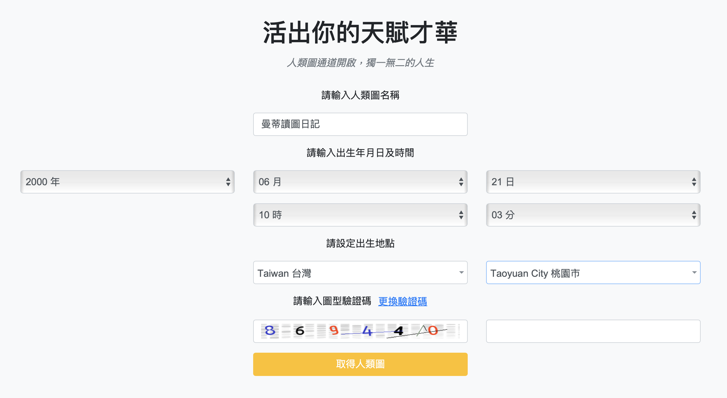 - 輸入驗證碼,按下「取得人類圖」!