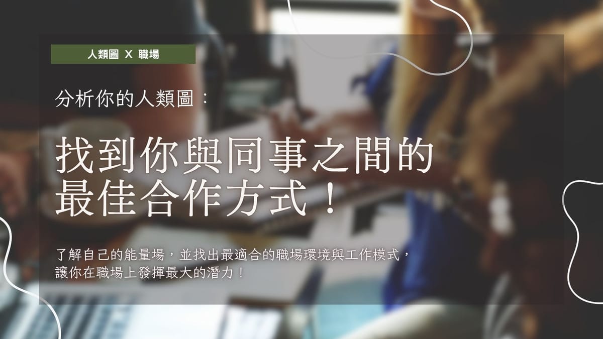 透過人類圖分析,我們可以更了解自己的能量場,並找出最適合的職場環境與工作模式,讓你在職場上更順流、發揮最大的潛力!