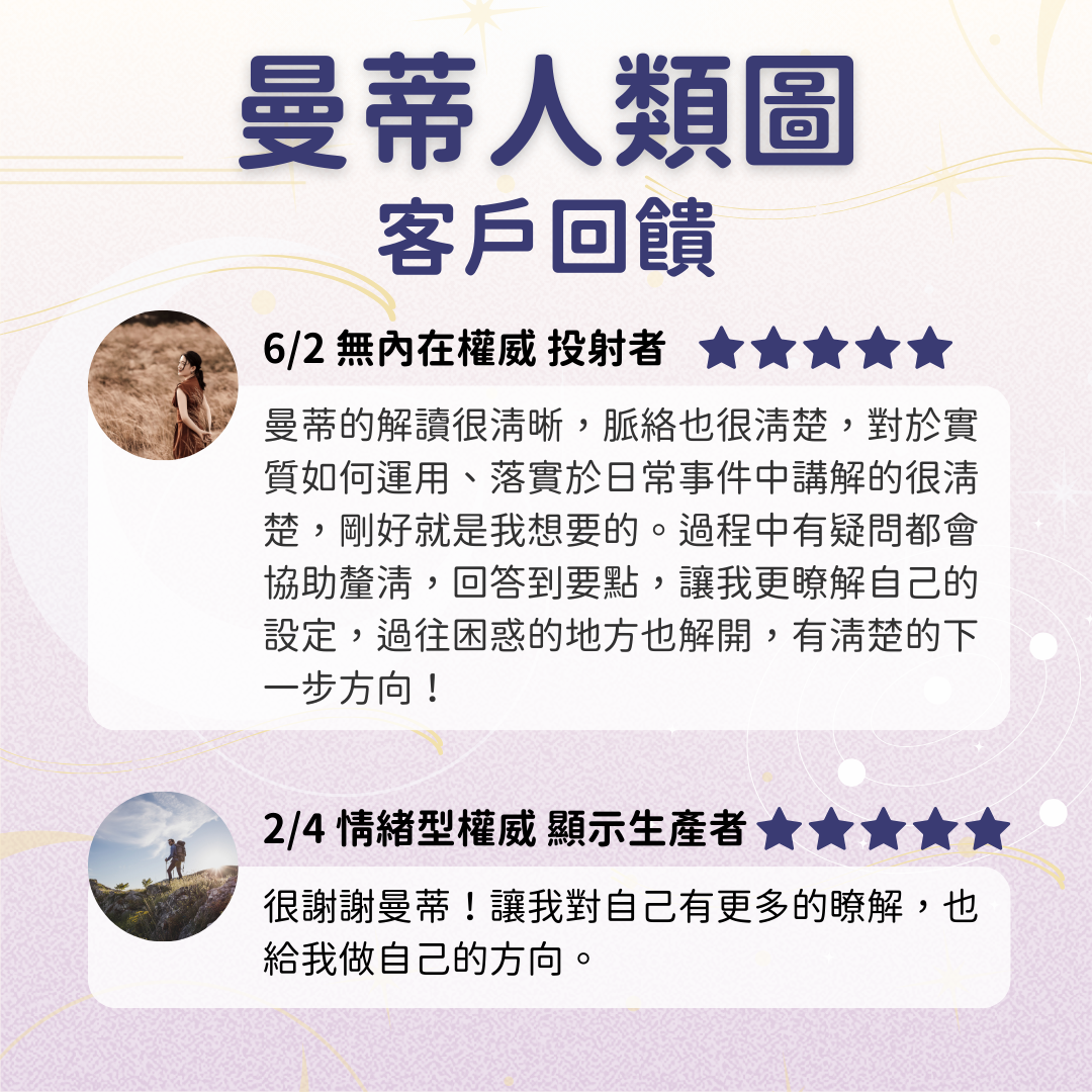 如果你看完還是不太確定,自己能如何發揮人類圖設計的方式,歡迎預約曼蒂的人類圖解讀服務,一定會讓你有所收穫,更加清楚地運用正確的方式,活出滿足人生!