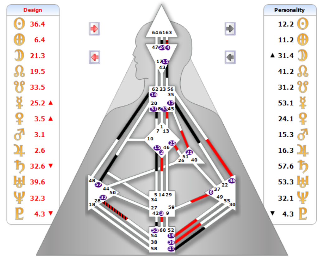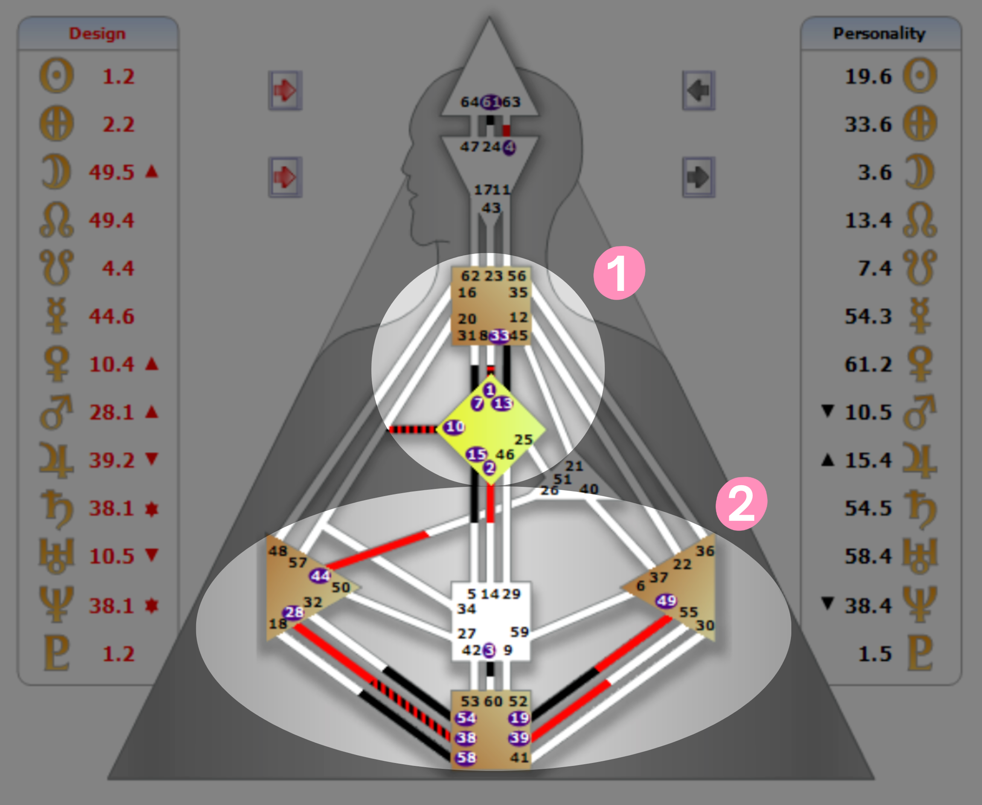 除了反映者以外,其他所有的類型一定至少有 2 個以上有定義的能量中心,而有定義的能量中心透過通道連在一起,形成的能量區塊,就是「定義」。