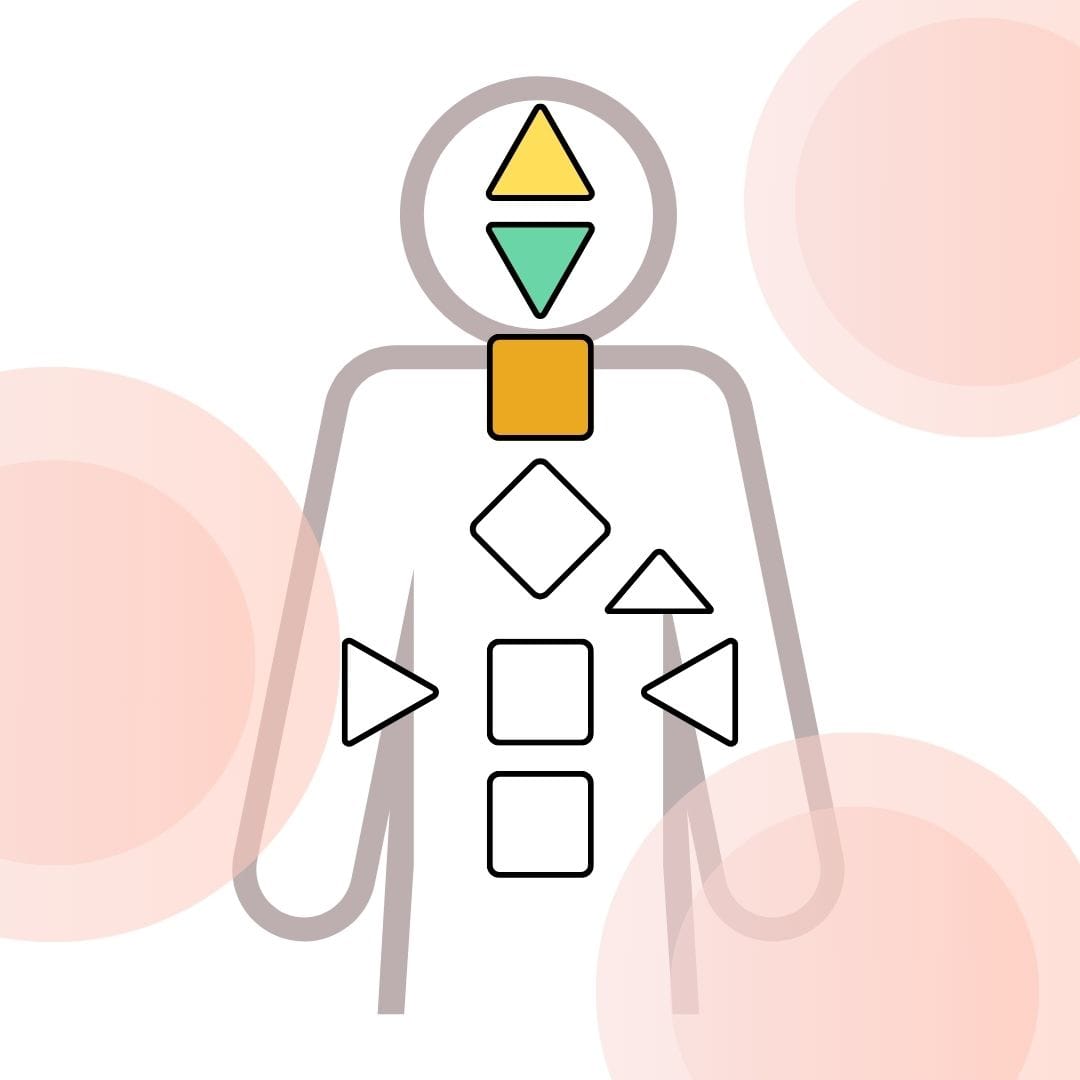 喉嚨中心以下的能量中心,屬於身體層面的感受,內在的意志、熱情,情緒與恐懼,體力與驅動力,這些都需要靠感受內在與身體,最終透過行動顯化。